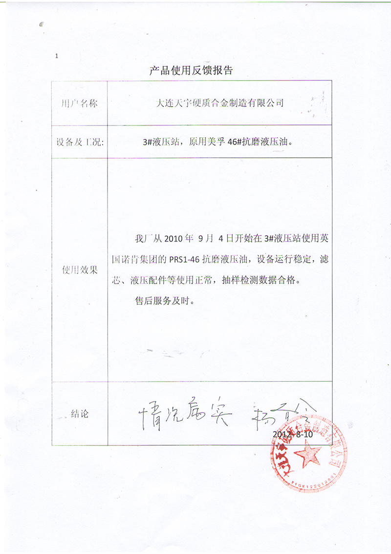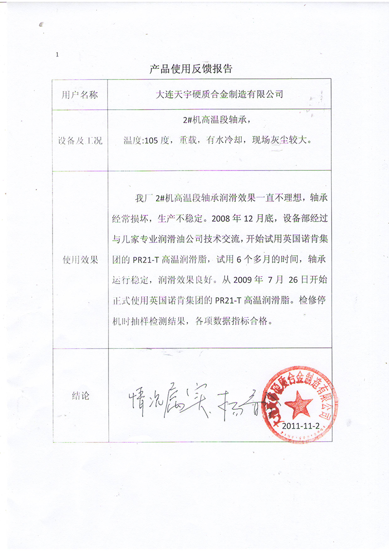 諾肯潤滑油在大連天宇硬質(zhì)合金制造有限公司成功應(yīng)用