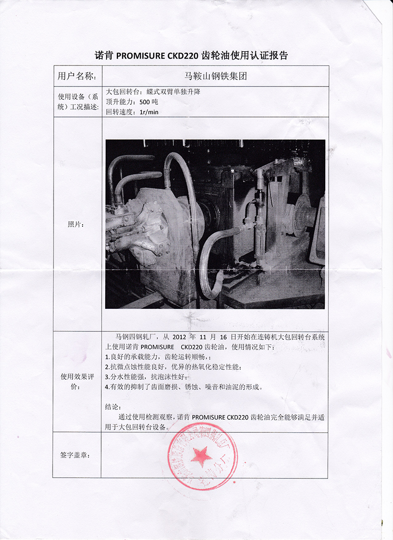 諾肯PROMISURE潤(rùn)滑油在馬鋼取得成功應(yīng)用