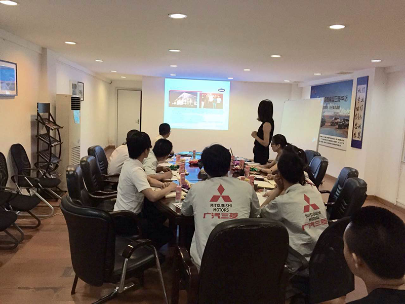諾肯公司的集團(tuán)客戶部黃美英經(jīng)理在為三菱4S店(南菱花都)做技術(shù)宣導(dǎo)!